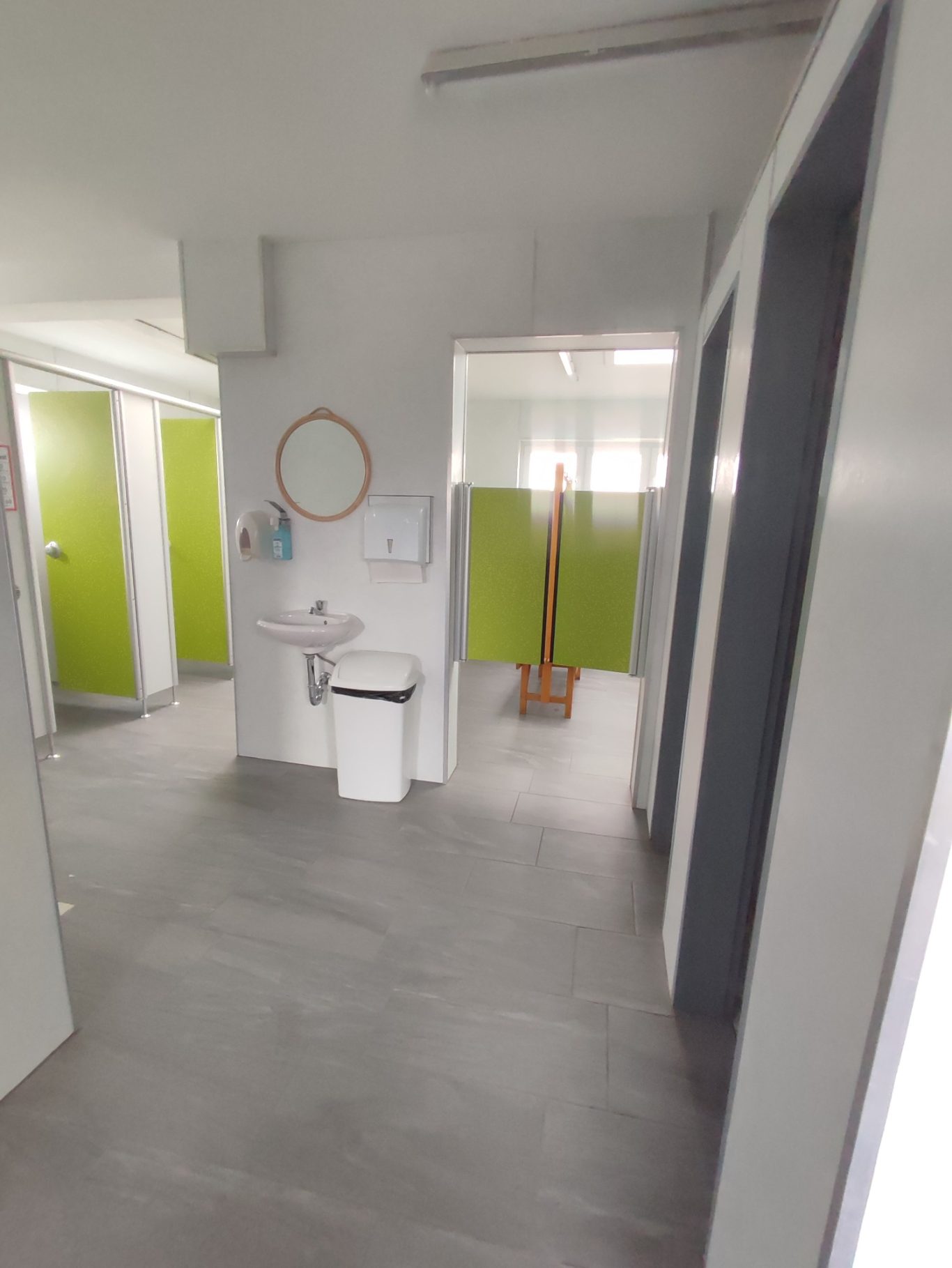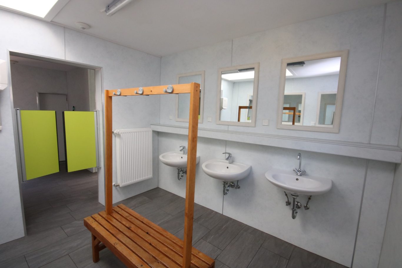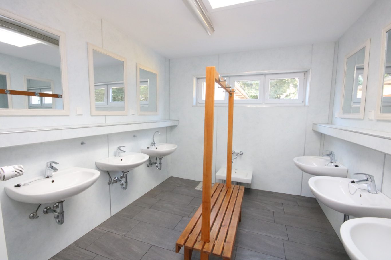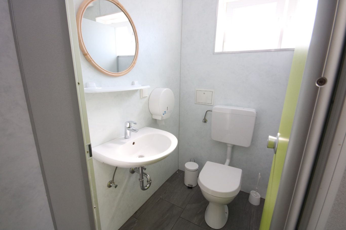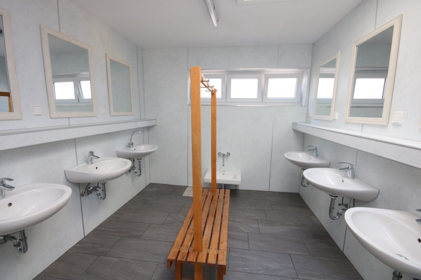 Das Hauptwaschhaus befindet sich direkt neben dem Waschmaschinenraum und unterteilt sich in Herren und Damenseite, auf der Herrenseite befindet sich auch ein Kindgerechtes WC für die kleinen Gäste. Herren sowie Damenseite sind mit Duschen, Wc´s und Waschraum ausgestattet.